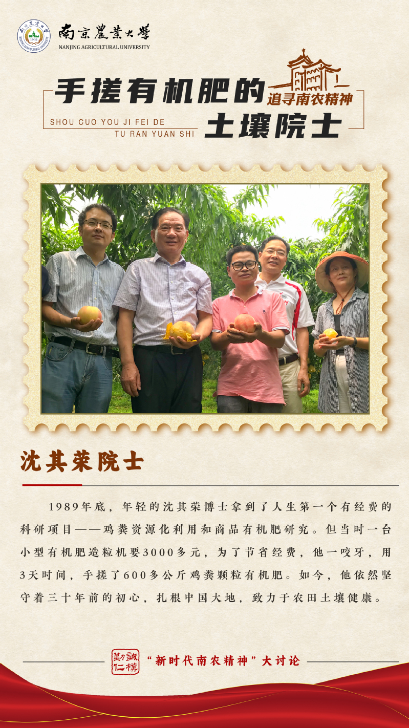 1989年底,年輕的沈其榮博士拿到了人生第一個(gè)有經(jīng)費(fèi)的科研項(xiàng)目——雞糞資源化利用和商品有機(jī)肥研究。當(dāng)時(shí)一臺小型有機(jī)肥造粒機(jī)要3000多元,為了節(jié)省經(jīng)費(fèi),他一咬牙,用3天時(shí)間,手搓了600多公斤雞糞顆粒有機(jī)肥。如今,他依然堅(jiān)守著三十年前的初心,扎根中國大地,致力于農(nóng)田土壤健康。