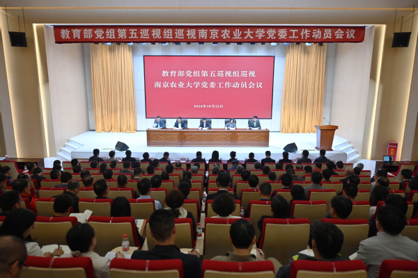 根據教育部黨組巡視工作統一部署,2024年10月22日,教育部黨組第五巡視組巡視南京農業大學黨委工作動員會議召開。會前,巡視組組長熊曉梅,副組長劉淑慧、劉繼文與南京農業大學黨委書記王春春、校長陳發棣見面溝通,通報了巡視工作有關安排。會上,熊曉梅作動員講話,對深入學習貫徹習近平總書記關于教育、關于巡視工作的重要論述,貫徹落實黨的二十屆三中全會和全國教育大會精神,貫徹落實黨中央重大決策和部黨組工作部署,扎實開展巡視工作提出要求。王春春主持會議并代表學校黨委作表態發言。