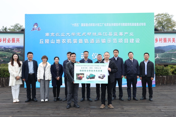 期間,南京農業大學所承擔的“十四五”國家重點研發計劃“丘陵山地農機裝備軌道運輸示范項目”建設在麻江藍夢谷生態藍莓產業示范園啟動。